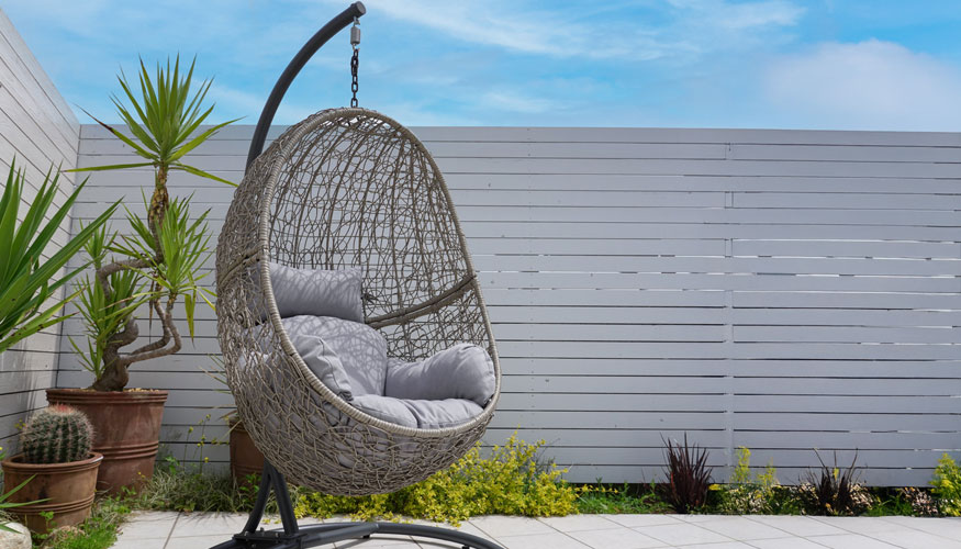 風を受けてゆらゆらと揺れるハンギングチェア